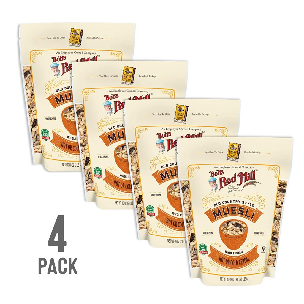 Muesli was invented over a century ago by Swiss doctor Maximilian Bircher-Benner, a man who was way ahead of his time when it came to understanding the health benefits of whole grains. He knew that good food is the best medicine, so he created a blend of hearty whole grains, fruit and nuts to nourish his patients. Inspired by Dr. Bircher-Benner’s creation, Bob’s Red Mill Old County Style Muesli is made with a combination of five flavorful rolled whole grains—oats, wheat, barley, rye and triticale. Dates and raisins add sweetness; sunflower seeds, almond slices and walnut pieces add crunch; and flaxseed meal gives an extra nutritional boost. For a wholesome breakfast, eat muesli as a cold cereal with milk or yogurt. For a hearty hot meal, cook muesli on the stovetop like oatmeal.