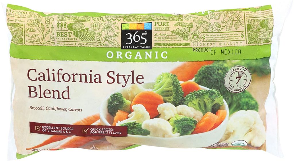 I think everyone should stock some frozen vegetables just in case. The combination of cauliflower, carrots, and broccoli is a great choice. It adds color and also nutrition.